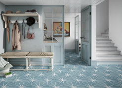 Apavisa Tomette Bleue Décorée STARLINE BLUE NAT – Hexagone 25×30 Cm – R10 – 0.935m²